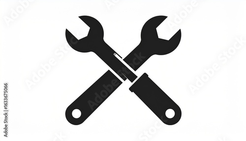 A minimalist black vector icon of a crossed wrench and screwdriver. A clean, logo-ready symbol for repair, tools, or maintenance service.