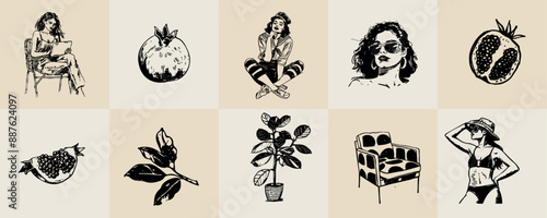 A minimalist collection of hand-drawn vector illustrations of food and beverage girls. Great for social media, posters, postcards, web design