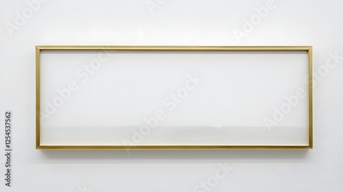 A minimalist floating frame with a gold border, showcasing an empty space on a white wall