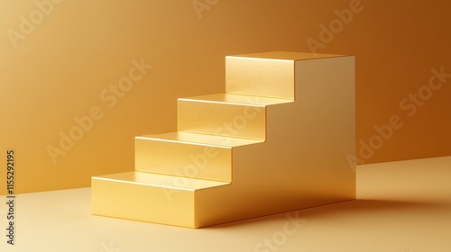 A minimalist golden staircase with four steps against a warm background.