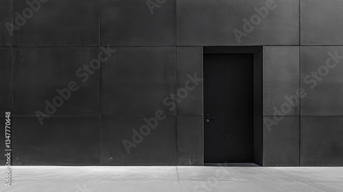 A minimalist, high-contrast image of a black door icon centered on a smooth grey backdrop, with clean lines and sharp edges, creating a simple yet striking visual.