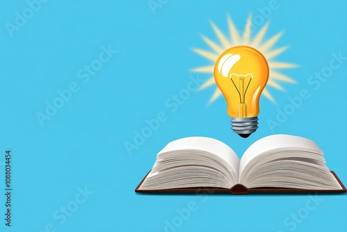 A minimalist icon of an open book with a glowing lightbulb above it, symbolizing adult education