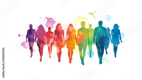 A minimalist icon-style image depicting a group of people on a clean white background. Generative AI
