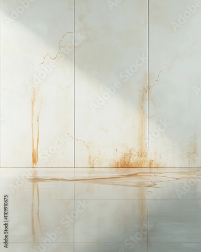 A minimalist interior featuring textured walls and a reflective floor.