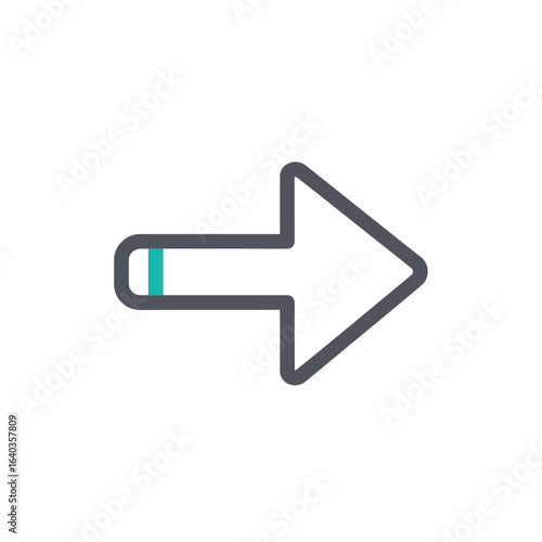 A minimalist, isolated right arrow icon with a teal accent, presented on a clean white background for a modern, directional design element.