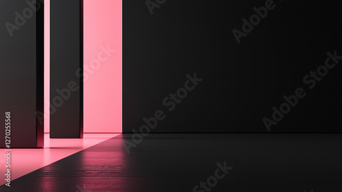 A minimalist modern black background with a pink highlight