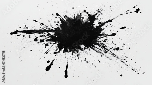 A minimalist paint splash of bold black and white, with the black ink radiating outward on a pristine white background. The stark contrast creates an elegant and striking visual.
