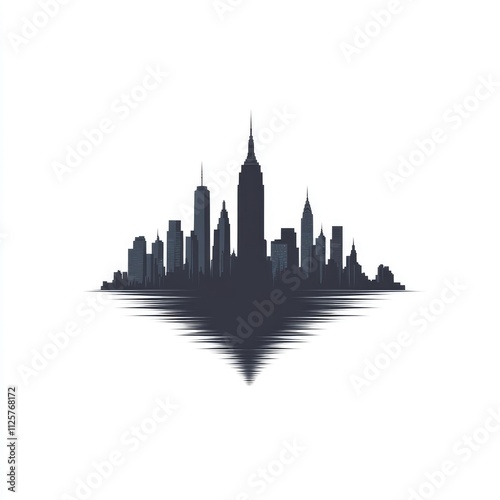 A minimalist silhouette of a city skyline, emphasizing iconic buildings and a reflective effect.