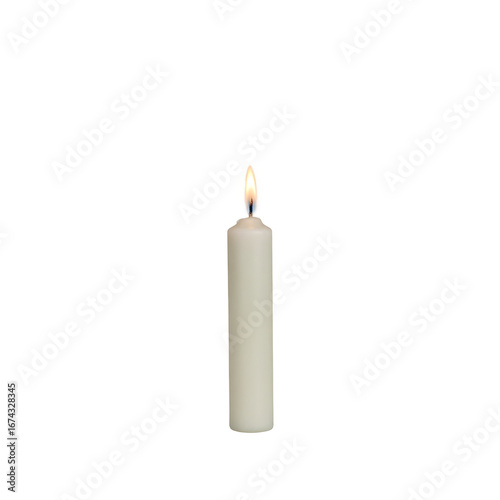 A minimalist white candle glowing softly symbolizing hope serenity and purity Perfect for calming spiritual or festive concepts, isolated