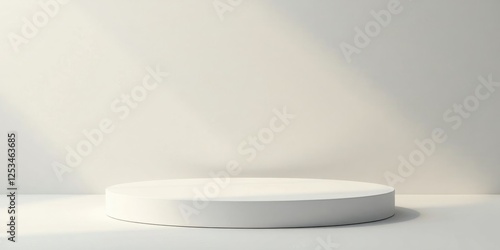 A Minimalist White Circular Platform Display in Soft Lighting Against a Neutral Background for Product Presentation or Mockup Design