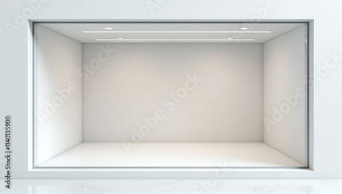 A minimalist white storefront with a clean facade, showcasing an empty space and modern design, exuding elegance and simplicity