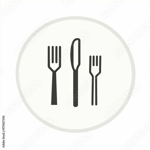 A minimalistic design showcases a fork, knife, and spoon arranged neatly, emphasizing table settings and dining aesthetics