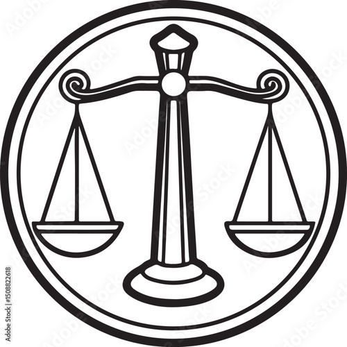 A minimalistic legal scale representing fairness and law in a classic line illustration.