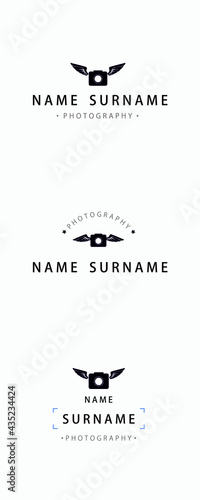 a minimalistic logo for a photographer, photo equipment store, photo booth chain or photo studio. camera with wings.