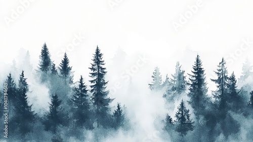 A misty forest landscape with tall trees and soft morning light illuminating the tranquil setting in autumn