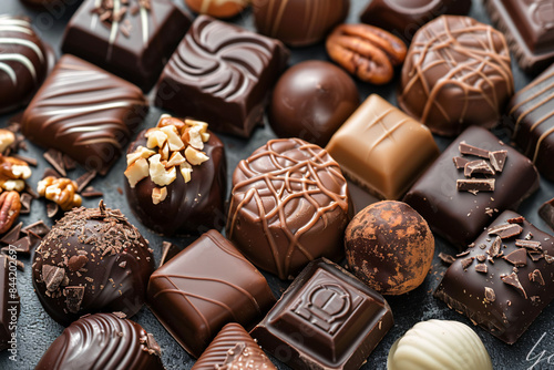 A mix of chocolates for the celebration of World Chocolate Day, including a variety of dark, white, and milk chocolate treats.