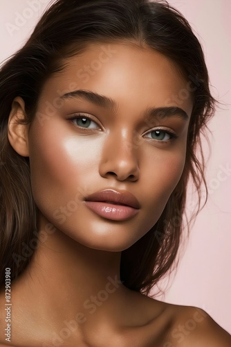 A model with long hair and blue eyes.