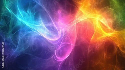 A modern abstract background with a burst of rainbow colors, layered with translucent organic shapes and smooth, flowing gradients