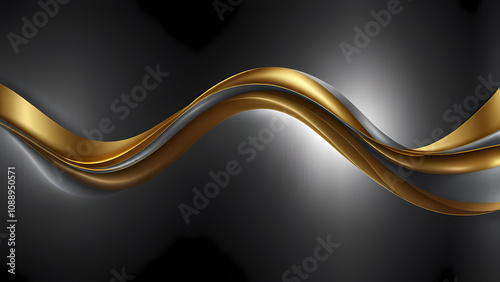 a modern abstract background with a flowing theme, using metallic hues like silver and gold, paired with dark gradients