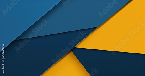 A modern abstract design featuring layered geometric shapes in blue and yellow tones, suitable for backgrounds or graphic projects.