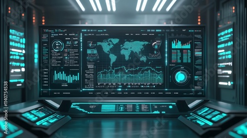A modern and clean stock market dashboard featuring graphs, charts, and financial data on a minimal blue-gray background.