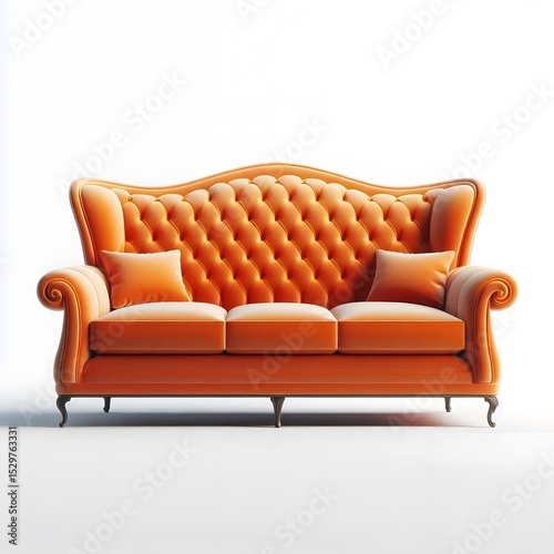 A modern and luxury orange color sofa isolated on white background