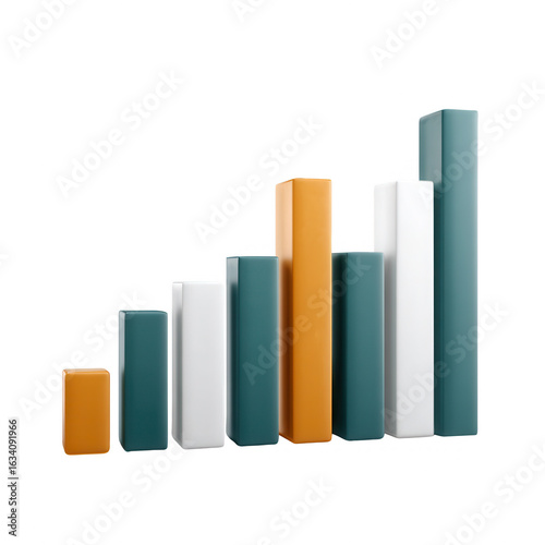 A modern bar graph representing growth with various colored bars, isolated on a white background. Ideal for financial and analytical presentations.