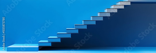 A modern blue staircase with a matching blue background. -