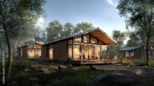 A Modern Cabin Nestled in a Forest Setting at Dusk