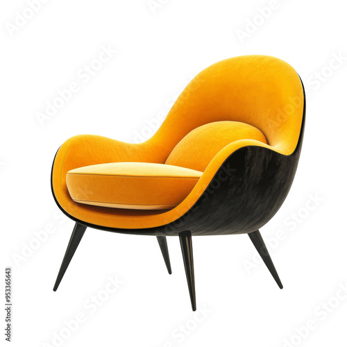 A modern chair with yellow upholstery and a bold black frame stands out against a clean transparent background, chair on transparent background