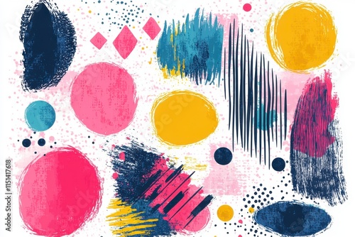 A modern collection of brightly colored drops featuring fluid shapes in shades of pink, yellow, blue and green.