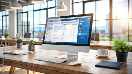 A modern computer screen displays an open email client and web browser windows, showcasing digital communication and online research in a busy workplace setting.