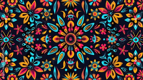 A modern design with traditional Hispanic symbols and vibrant colors