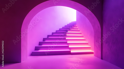 A modern display with luminous stairs and an arch in vibrant purple, perfect for a stylish showcase or presentation. Luminous Arch. Illustration