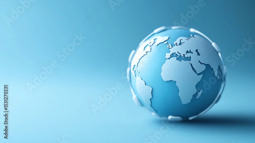 A modern globe showcasing continents in blue hues, symbolizing the interconnectedness of our world and global awareness.