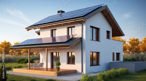 A modern house with solar panels installed on the roof. Generative ai