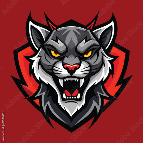 A modern illustration of a black and white cat with striking yellow eyes against a bold red backdrop, Modern Illustration of a Zombie Cougar, Captivating Logo Design