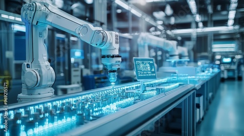 A modern industrial plant with smart machines and AI systems working together on a fully automated production line
