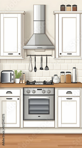 A modern kitchen with white cabinets, a stainless steel oven, and a gas stove.