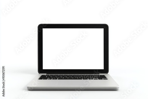 A modern laptop with a blank white screen, perfect for showcasing your website, app, or design. The isolated white background allows for easy integration into any project. This image is ideal for digi