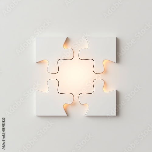 A modern light fixture designed as interlocking puzzle pieces, creating a warm glow in a minimalist setting.