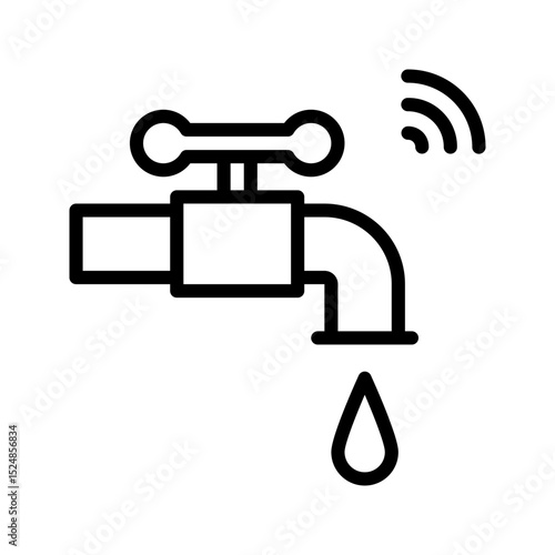 A modern, minimalist black outline water control icon with signal waves. Represents smart water management, leak detection, and connected plumbing. Ideal for smart home apps.