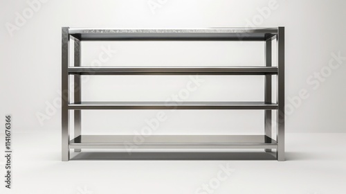A modern, minimalist bookshelf with clean lines and a sleek, silver frame, isolated on a white background