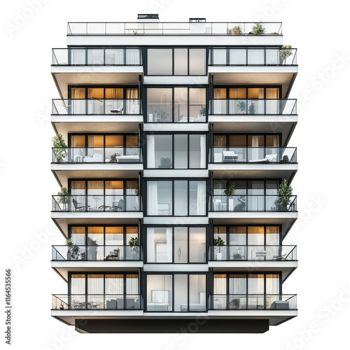 a modern multi-story residential building featuring multiple balconies with glass railings. large windows. and a sleek design the structure is designed for urban living. showcasing a blend of contempo