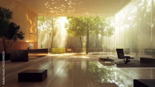 A modern office with a large window and natural light.