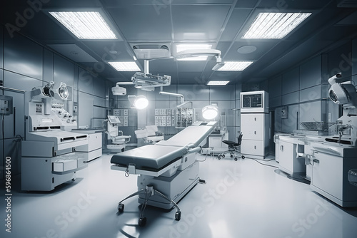 A modern operating room in a hospital, equipped with advanced medical technology and instruments for performing complex surgeries. Generative AI, AI.