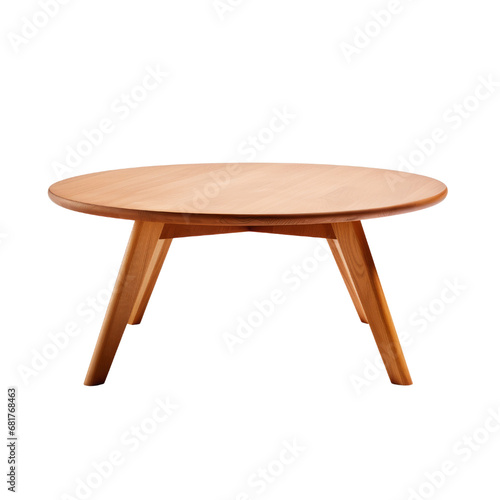 A modern round wooden coffee table with a sleek design, isolated on a transparent background.