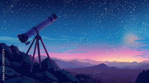A modern telescope on a mountain, scanning the night sky with a view of distant galaxies and cosmic phenomena.