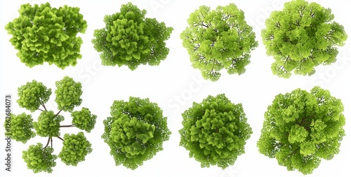 A modern watercolor illustration of a flowering tree viewed from above, set against a white background, ideal for landscape and architectural designs, including garden and environmental elements with