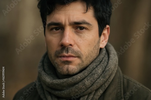 A moment of contemplation captured in the eyes of a man against a muted backdrop